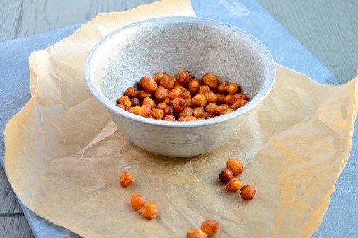 - Hussel de erwten door elkaar en rooster ze nog eens 10 minuten tot ze goudbruin en knapperig zijn