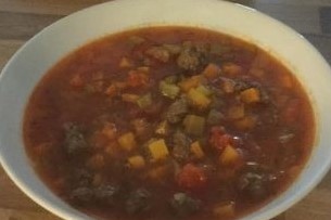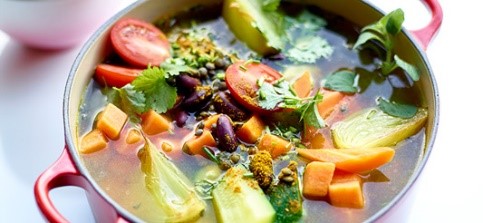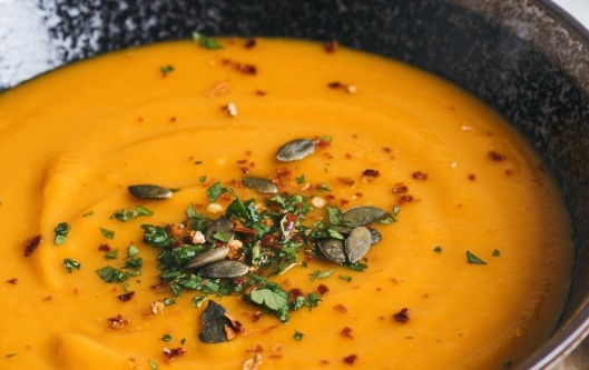 Soep van geroosterde pompoen, rozemarijn en rode ui